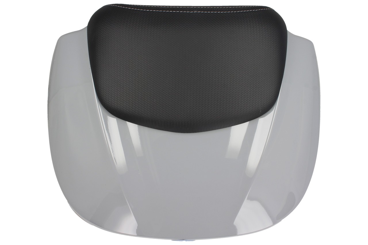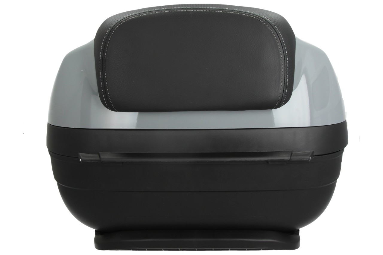 Topkoffer met snelmontagesysteem. Biedt ruimte voor een modulaire helm. Bovenste koffer gelakt in de kleur van het voertuig, met comfort rugkussen voor de passagier, in hetzelfde materiaal en dezelfde afwerking als de zitting.