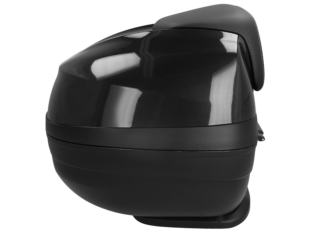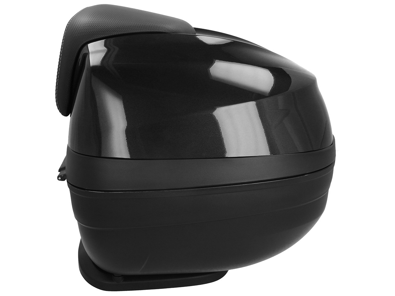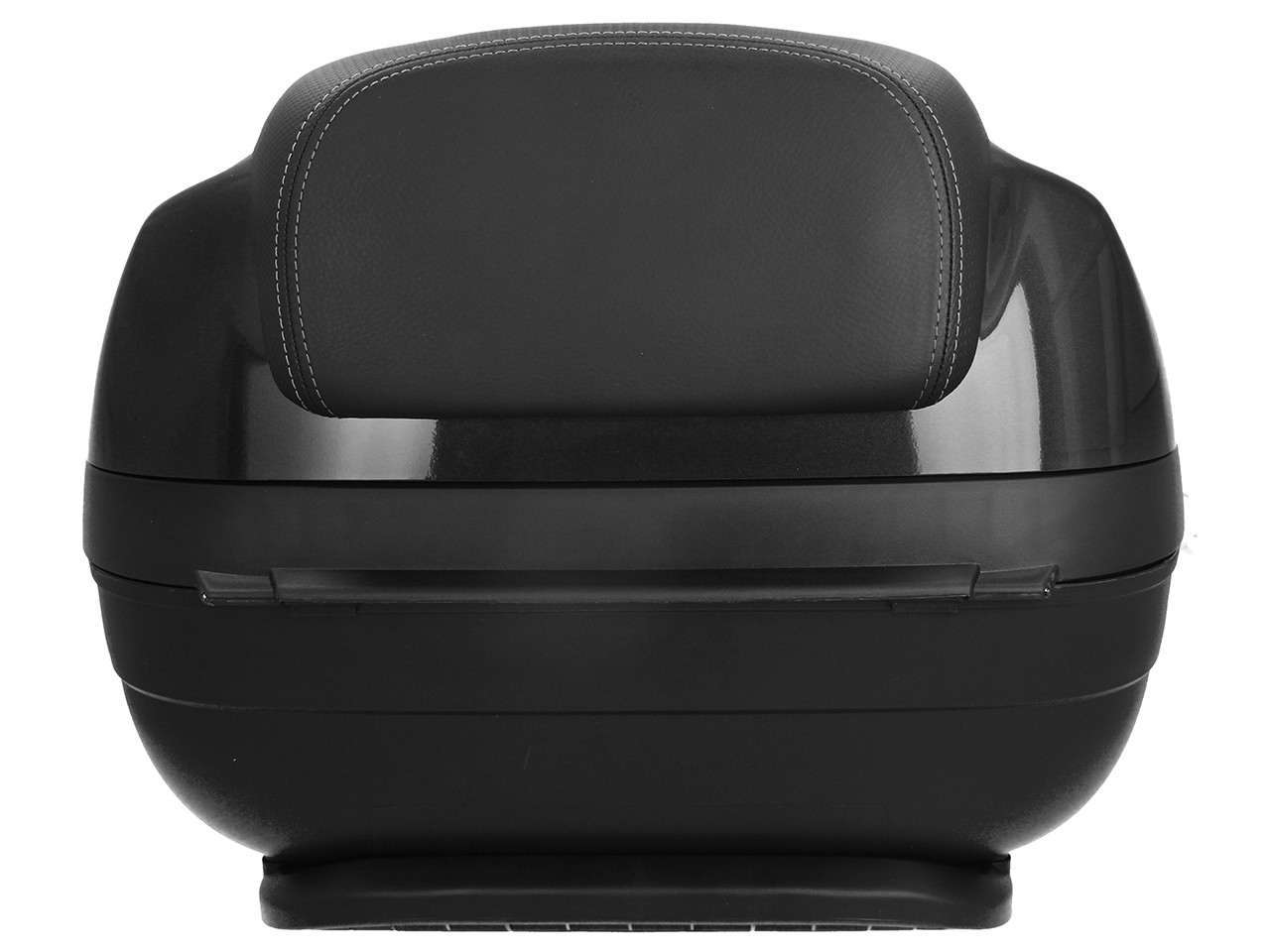 Topkoffer met snelmontagesysteem. Biedt ruimte voor een modulaire helm. Bovenste koffer gelakt in de kleur van het voertuig, met comfort rugkussen voor de passagier, in hetzelfde materiaal en dezelfde afwerking als de zitting.