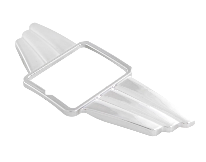 Productinformatie "Cascade siervleugel voor vierkant PIAGGIO embleem, Mark II, voor Vespa, kunststof, chroom"