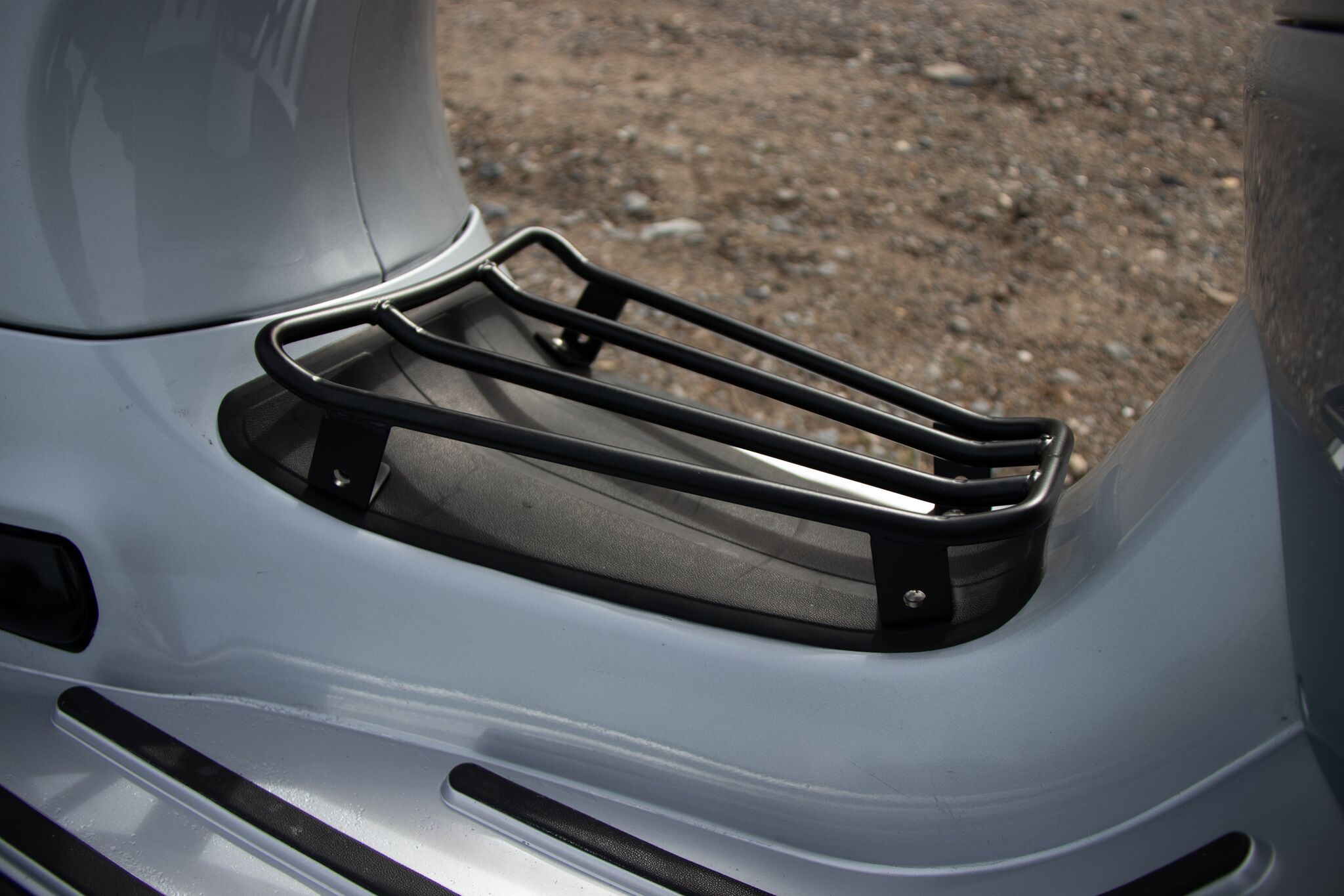 Productinformatie "Bagagedrager, mat zwart, voor instap voor Vespa GTS"
