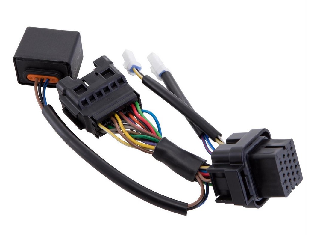 Snelheidssensor SIP (apart verkrijgbaar): Vervangt de originele snelheidsmeterkabel en pikt het signaal van de snelheidsmeterslak op. De bijgeleverde kabel wordt waterdicht met de sensor verbonden. Hij wordt gewoon door de stuurkolom getrokken en op de toerenteller aangesloten. De pick-up is dus zeer nauwkeurig en onafhankelijk van snelheidsmeterkabelbreuken. Artikelnr. 50000140