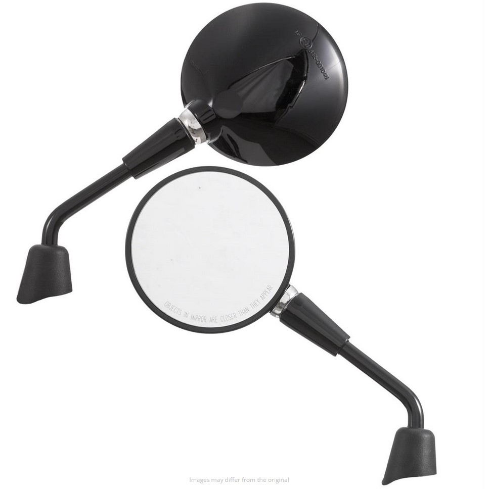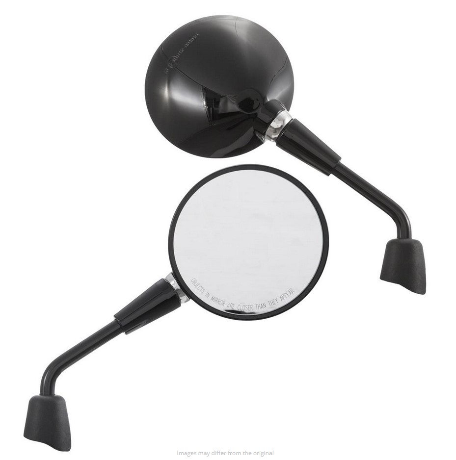 De spiegels Shorty zijn gebaseerd op de oorspronkelijke vorm van de Vespa spiegels, maar hebben een veel kortere spiegel arm. Met ca. 5-6 cm minder hendel lengte, het past perfect in het algemene uiterlijk van de Vespa. Dankzij het kogelgewricht kan de spiegelkop worden versteld, het gezichtsveld wordt ondanks de kortere hendel niet belemmerd. De spiegel heeft een E-nummer en mag zonder problemen aan het wegverkeer deelnemen. Levering inclusief rubber doppen en contramoeren.