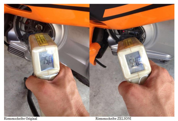 Katrol van ZELIONI. De flankhoek verschilt aanzienlijk van het origineel en zorgt voor een betere acceleratie en een geoptimaliseerde aandrijving met een betere krachtoverbrenging. De gewijzigde ventilatorbladen verlagen de temperatuur in de gehele aandrijving (vario en koppeling). Dit resulteert in minder slijtage van de V-snaar.