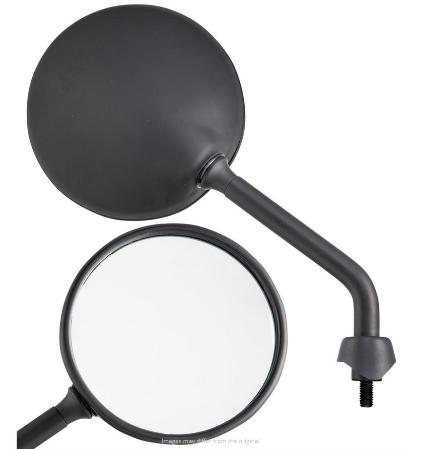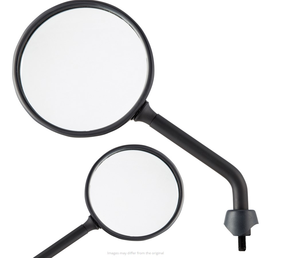 De spiegels Shorty zijn gebaseerd op de oorspronkelijke vorm van de Vespa spiegels, maar hebben een veel kortere spiegel arm. Met ca. 5-6 cm minder hendel lengte, het past perfect in het algemene uiterlijk van de Vespa. Dankzij het kogelgewricht kan de spiegelkop worden versteld, het gezichtsveld wordt ondanks de kortere hendel niet belemmerd. De spiegel heeft een E-nummer en mag zonder problemen aan het wegverkeer deelnemen. Levering inclusief rubber doppen en contramoeren.