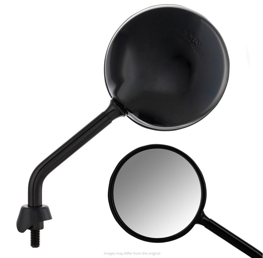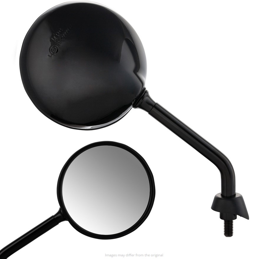 De spiegels Shorty zijn gebaseerd op de oorspronkelijke vorm van de Vespa spiegels, maar hebben een veel kortere spiegel arm. Met ca. 5-6 cm minder hendel lengte, het past perfect in het algemene uiterlijk van de Vespa. Dankzij het kogelgewricht kan de spiegelkop worden versteld, het gezichtsveld wordt ondanks de kortere hendel niet belemmerd. De spiegel heeft een E-nummer en mag zonder problemen aan het wegverkeer deelnemen. Levering inclusief rubber doppen en contramoeren.