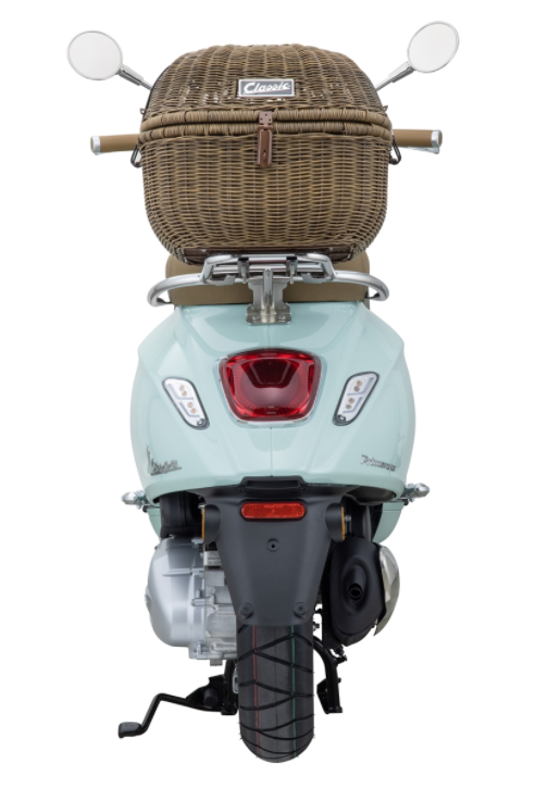 De bagagemand SIP "Classic" is een mooi alternatief voor de normale compacte Vespa Top Case en de ideale aanvulling voor iedereen die meer opslagruimte nodig heeft. Boodschappen uit de supermarkt, de wekelijkse marktboodschappen of een helm kunnen veilig worden opgeborgen in de mand van 36x32x28 cm. Een rubberen band houdt het deksel stevig gesloten, zelfs op oneffen wegen, en de bijgeleverde regenhoes beschermt de inhoud zelfs in een regenbui. Een klein hangslot (niet meegeleverd) kan worden bevestigd om spullen te beschermen tegen vreemde vingers. Een extra binnenzak is bij de levering inbegrepen. Met een volume van net geen 18 liter, handige draaghengsels en een treksluiting is het de perfecte metgezel voor allerhande boodschappen. De zak kan gemakkelijk worden meegenomen, gevuld en vervolgens eenvoudig in de mand worden gelegd. De "Classic" binnentas heeft een klein buitenvakje voor een zonnebril, mobiele telefoon of sleutels. De kleurgecoördineerde tas en mand vormen een harmonieus geheel.