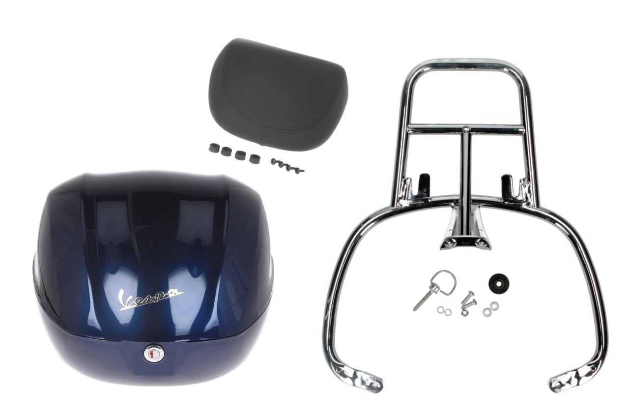 Productinformatie "Topcase Kit 32L donkerblauw (289/A), rugkussen zwart voor Vespa Primavera"