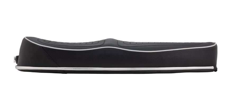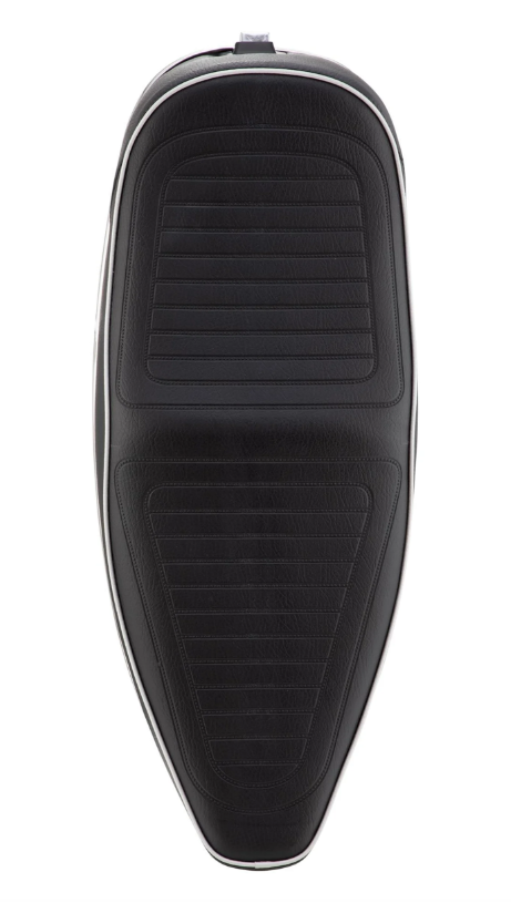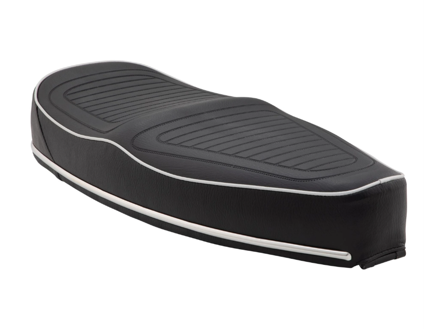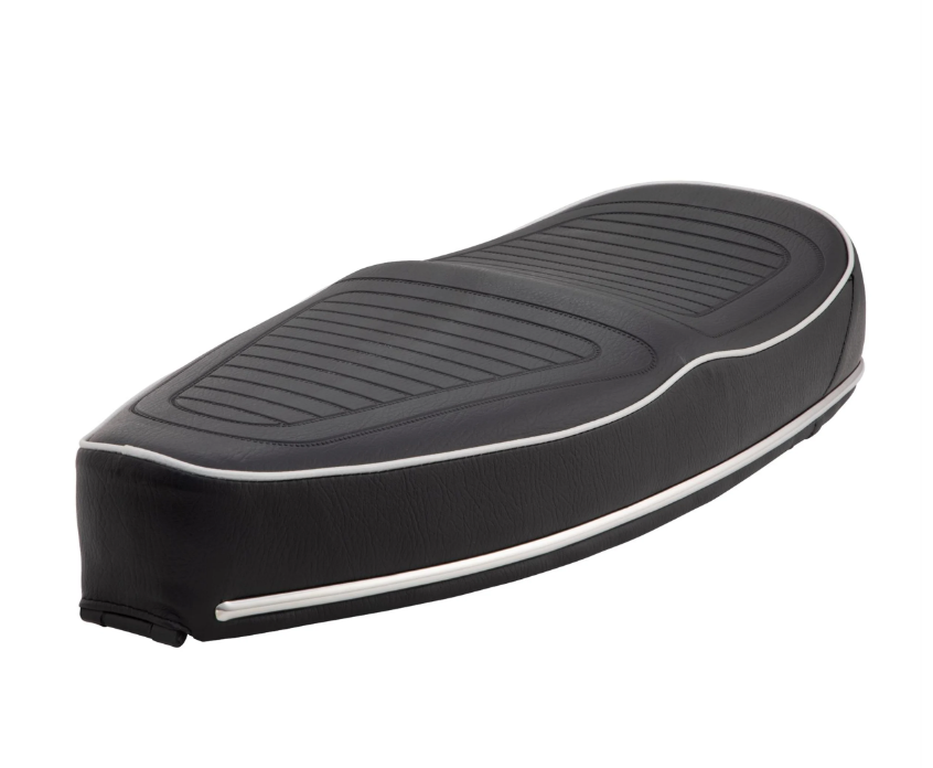 Productinformatie "Sportzadel "Sport" voor Vespa PX 80-200ccm, zwart gewatteerd, bies zilver"