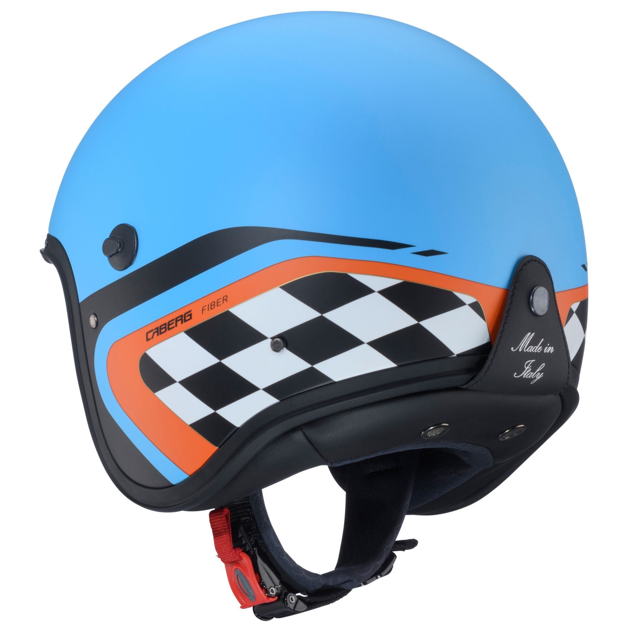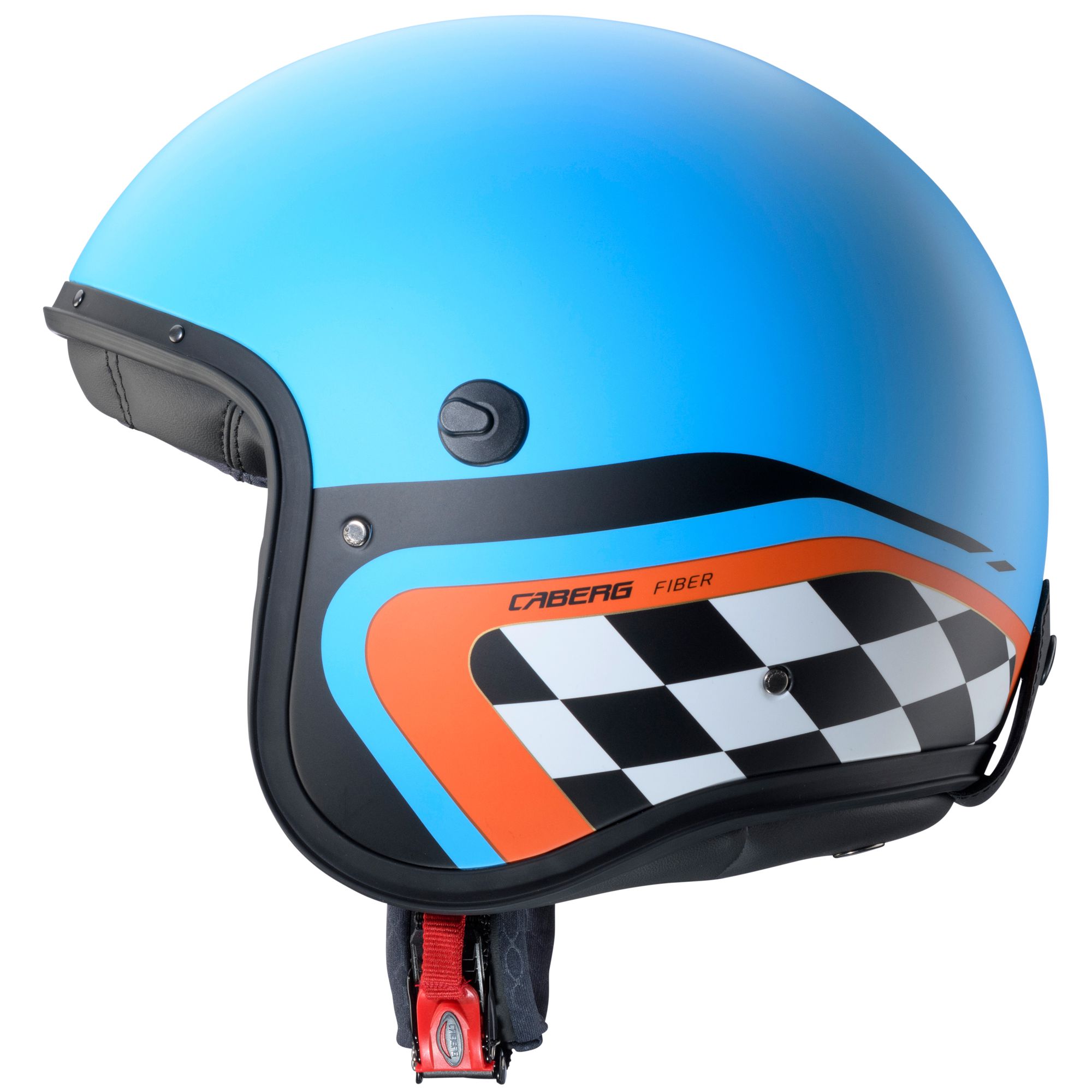 De Caberg Freeride X jethelm met Daytona decor in de kleuren mat lichtblauw/zwart-oranje heeft de volgende kenmerken: